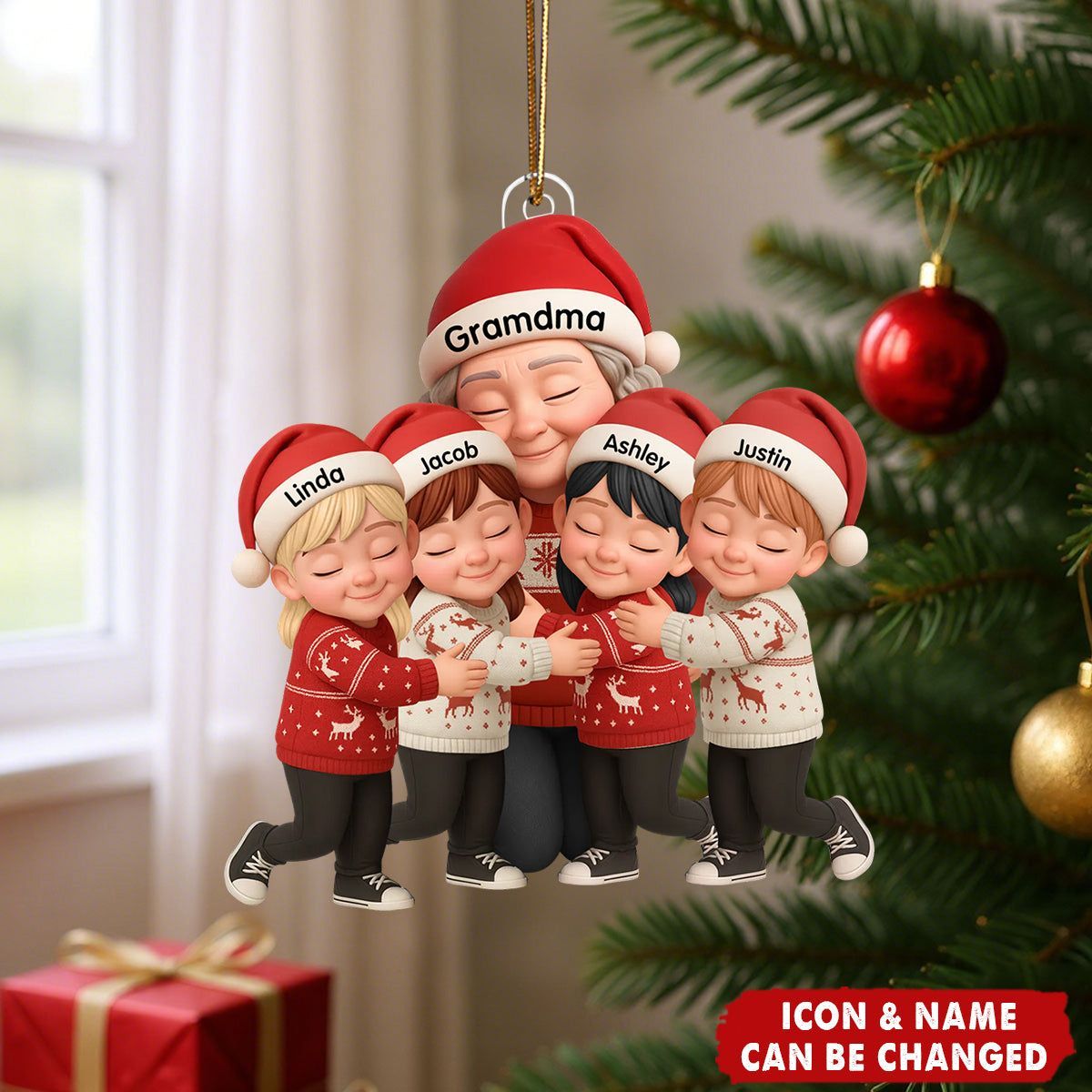 Grandma Hugging Grandkids - Personalized Acrylic Ornament - Heartwarming Christmas Gift for Grandma, Grandkids