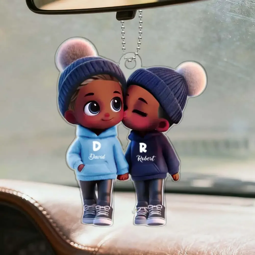 Cute Cartoon Couple Walking Personalized Acrylic Keychain