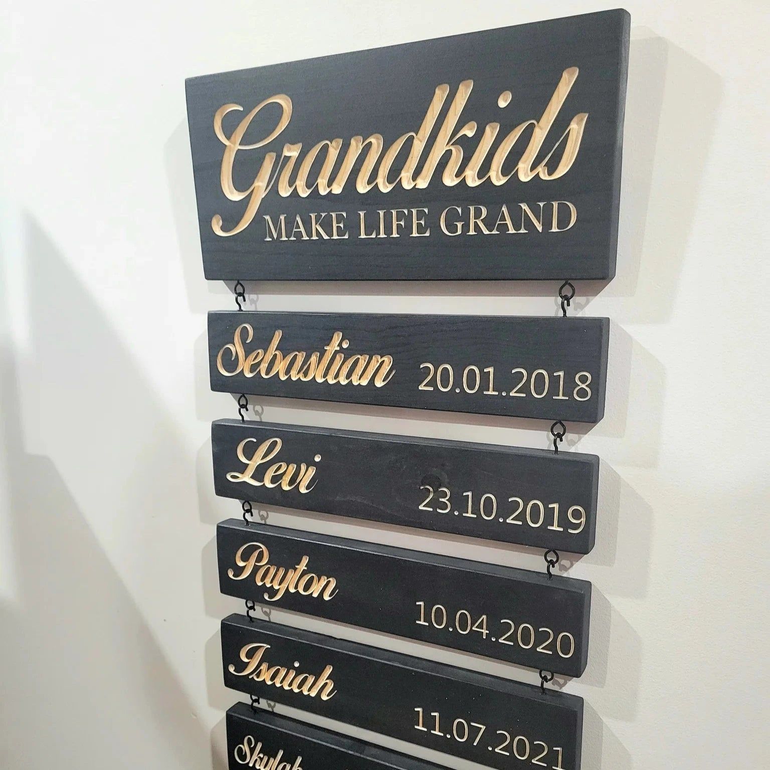 Personalised Family Sign UK - Engraved Grandchildren Names Christmas Gift