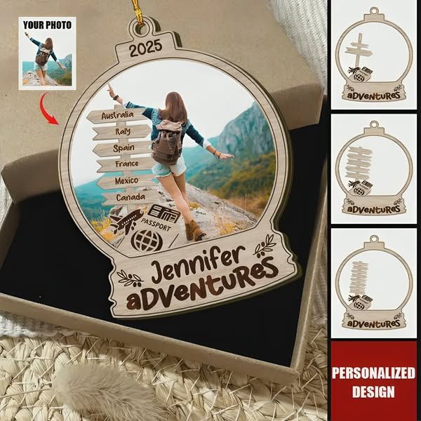Personalized Travel Ornament - Adventure Photo Christmas Gift for Couples